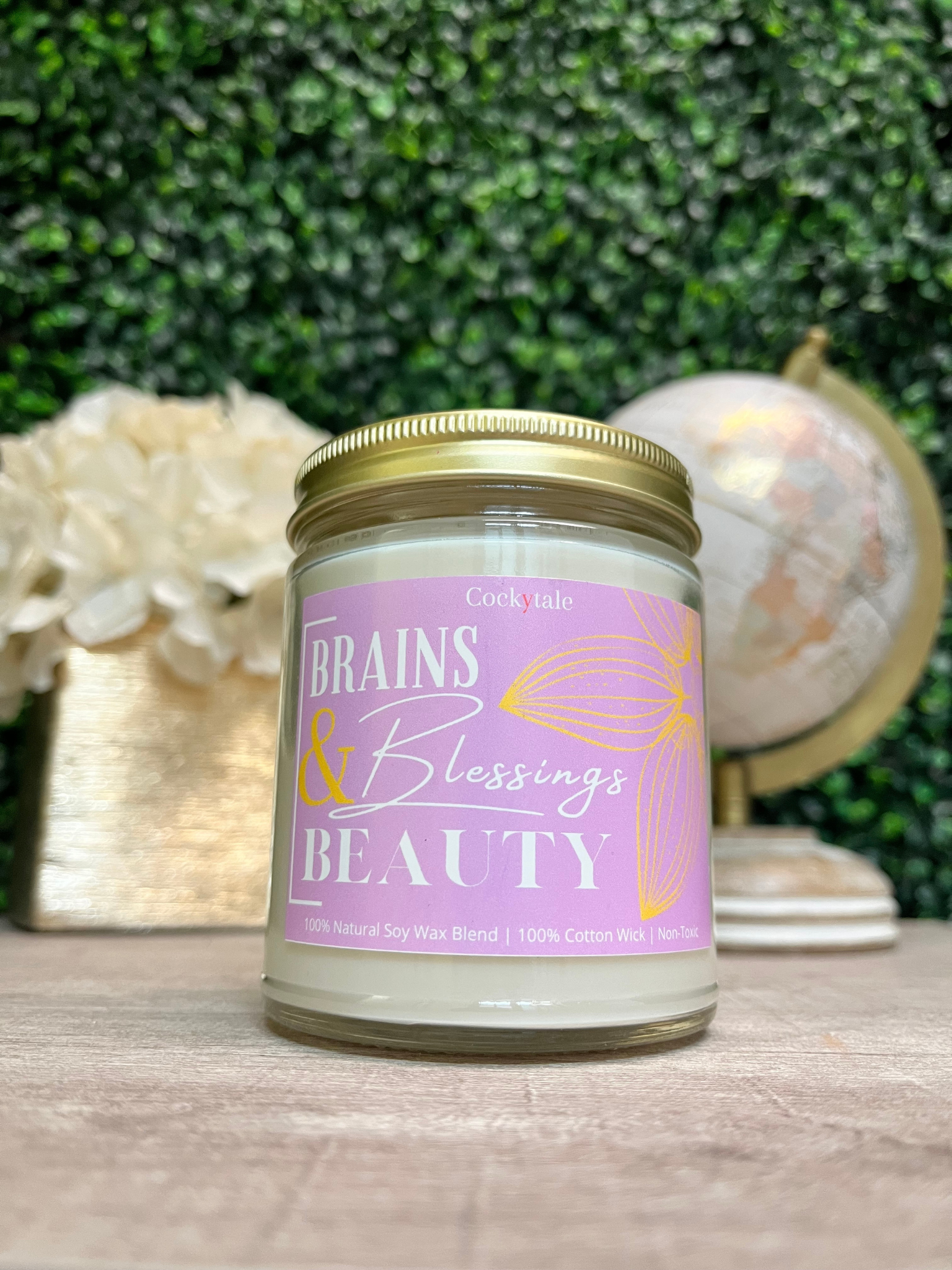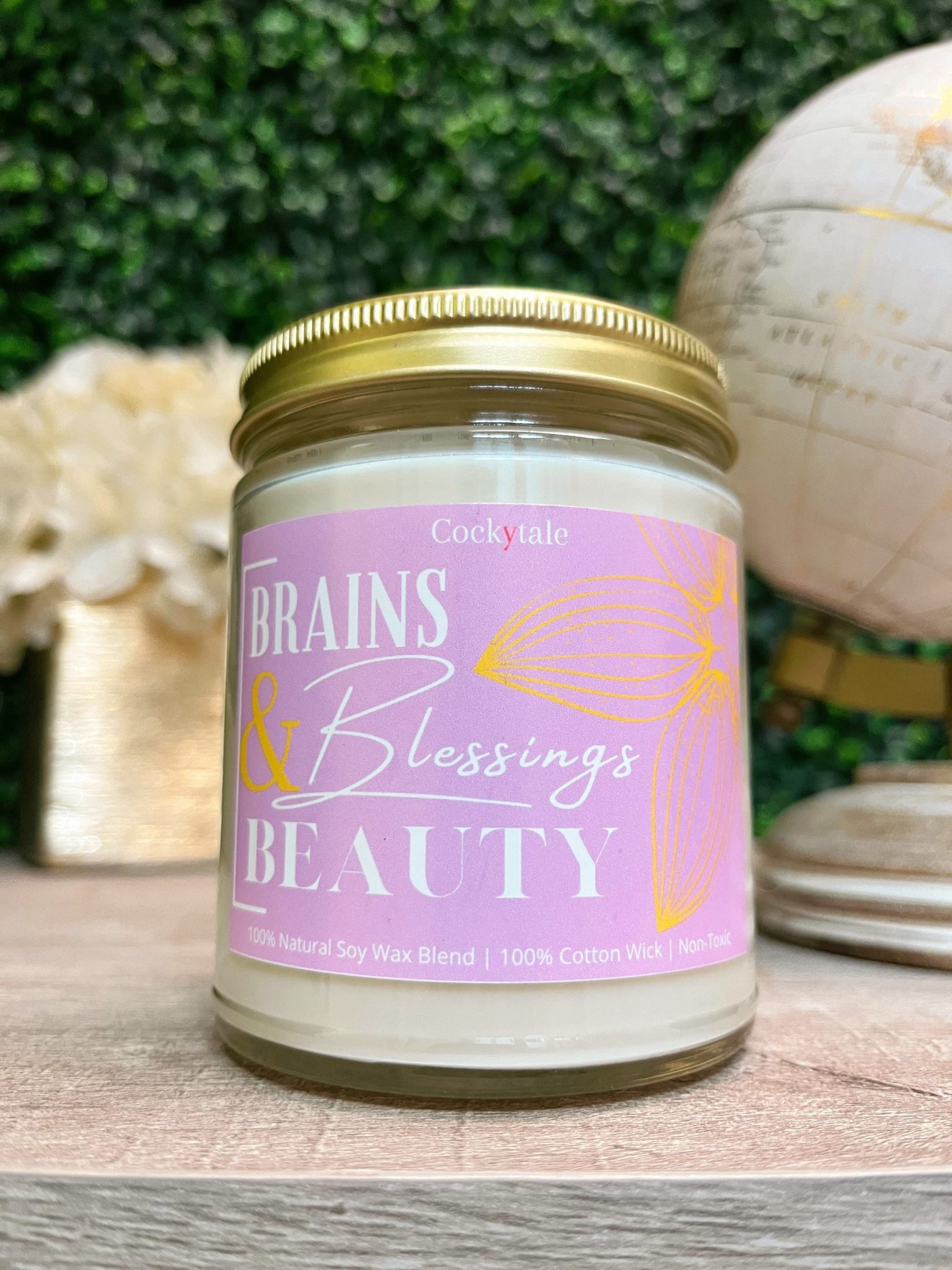 Treat yourself or a loved one to the ultimate gift of self-love and gratitude with our "Brains, Beauty, and Blessings" candle - a luxurious and empowering way to celebrate your blessings and honor your journey. Infuse your space with the delightful and uplifting fragrance of our "Brains, Beauty, and Blessings" candle, and let its positive energy enhance your mood and brighten your day.